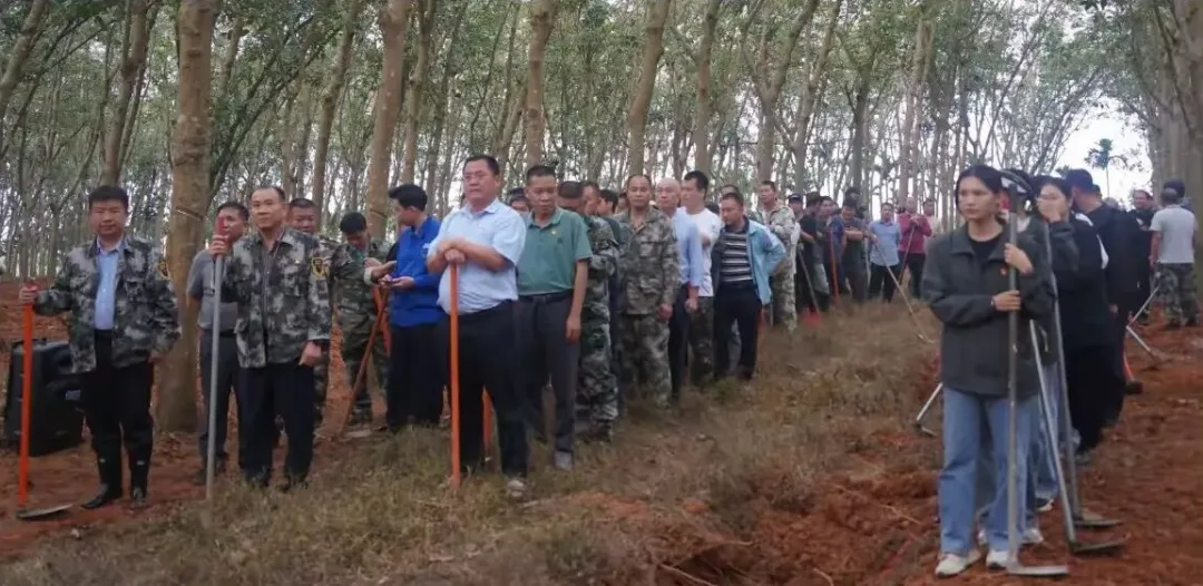 為推進黨建工作與生產(chǎn)經(jīng)營深度融合,12月8日,西培分公司組織黨員干部前往西慶片區(qū)3隊膠園,開展“義務獻肥促冬管”主題黨日活動,以實際行動助力橡膠生產(chǎn),讓黨旗在膠林一線高高飄揚。